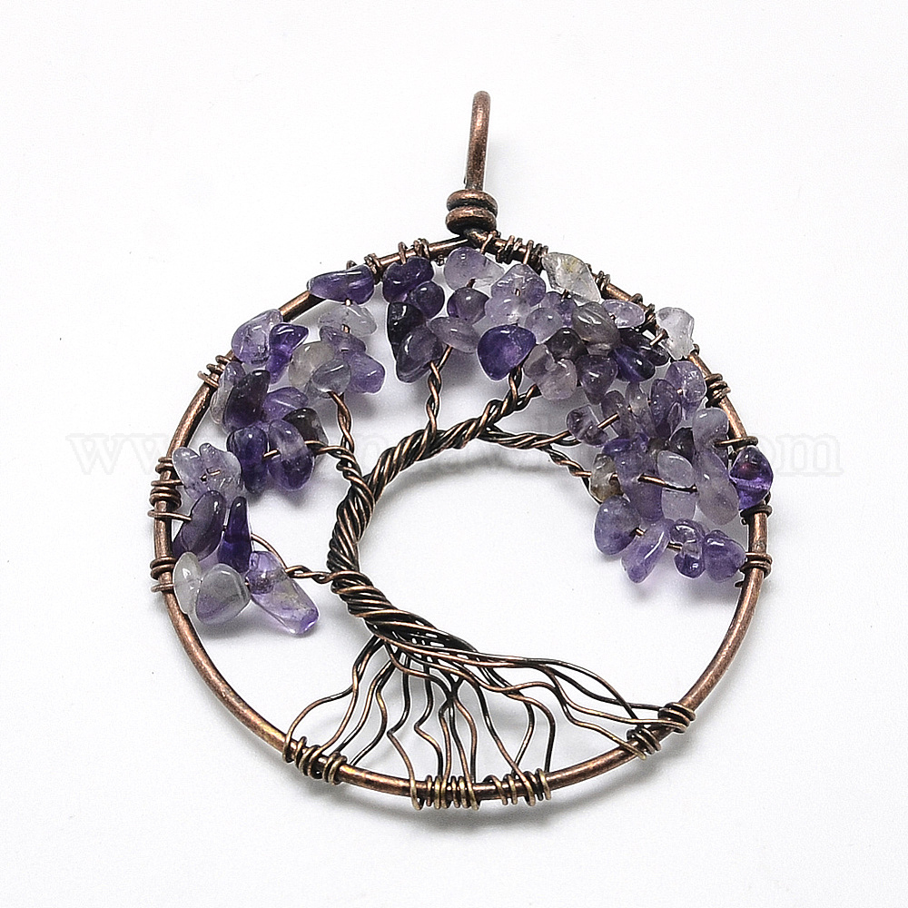 Большая подвеска, С латунной проволокой, дерево, Красная медь
