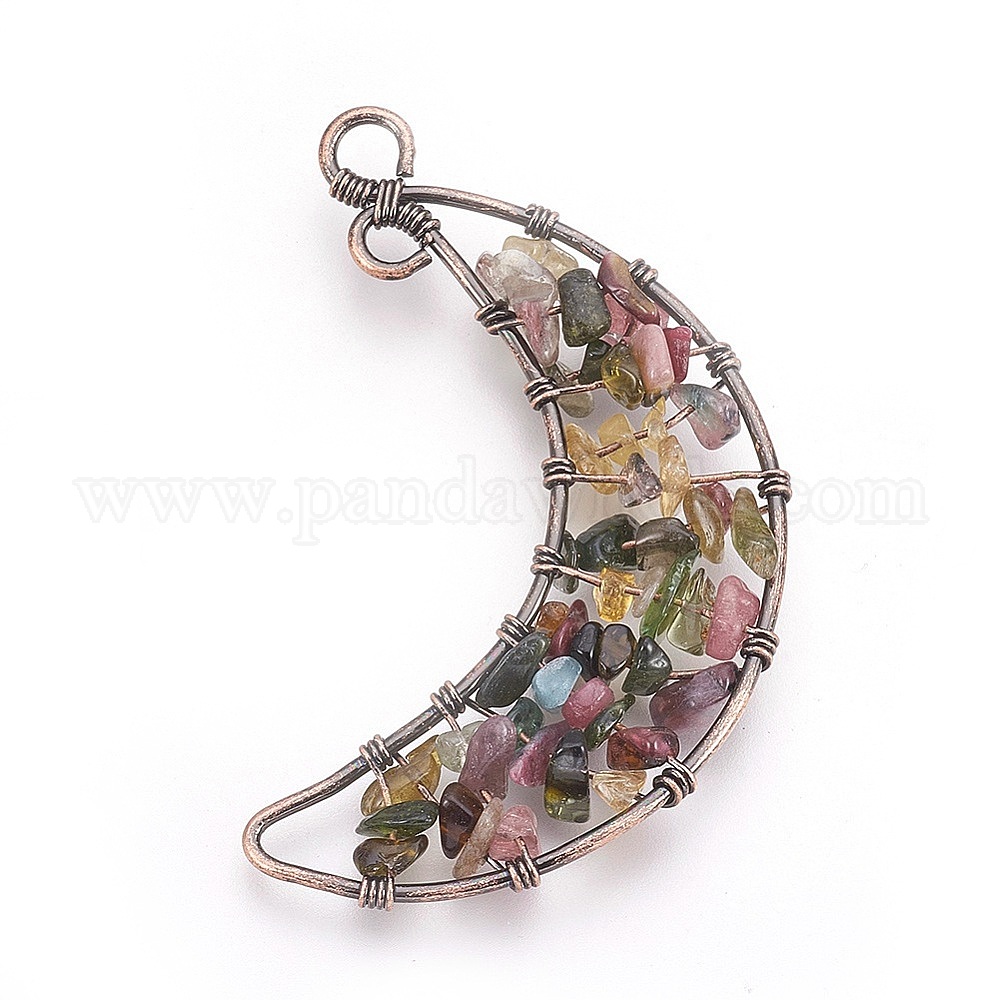 Чип драгоценные камни большие подвески, С латунными красными медными тонами, луна