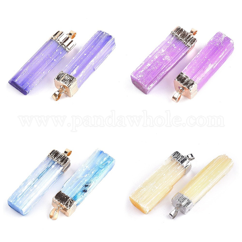 Гальванические природные селенит большие подвески, с железной фурнитурой, окрашенные, прямоугольные