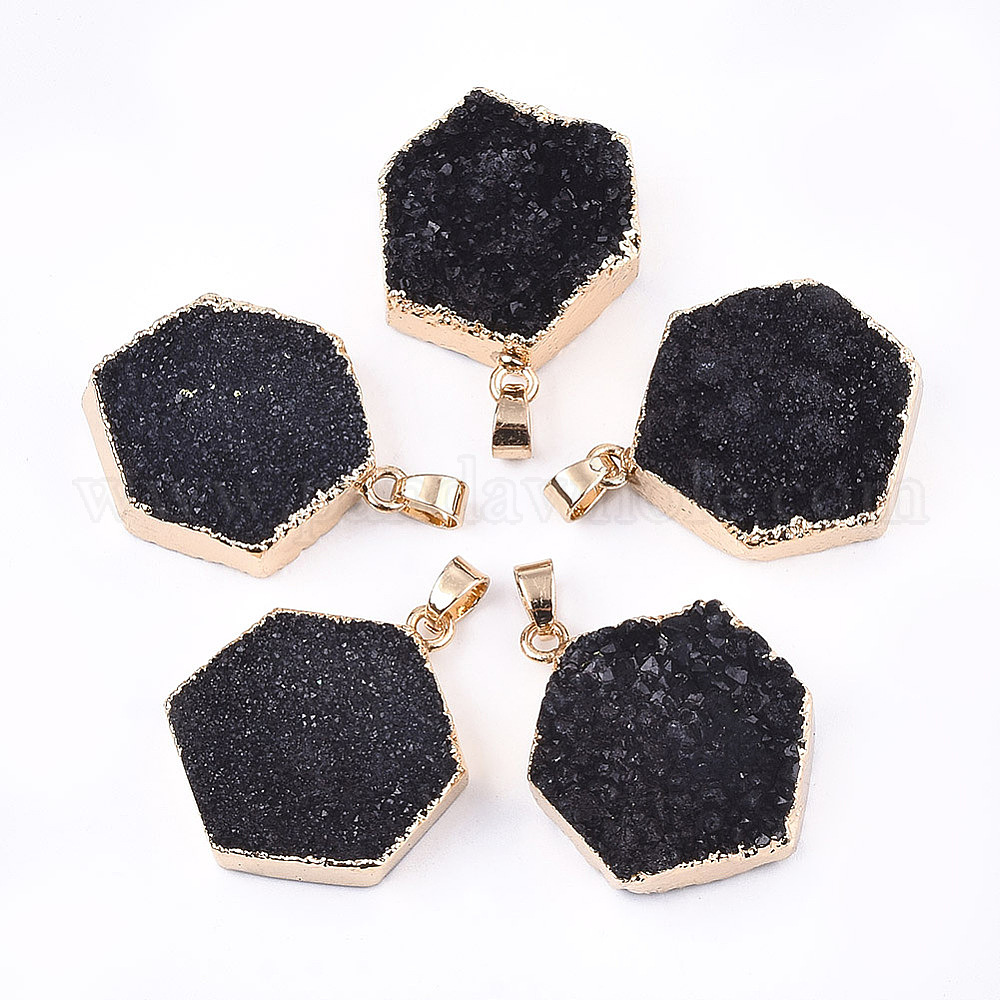 Гальванизированные подвесные агатовые подвески, с железной фурнитурой, окрашенные, шестиугольник, золотые