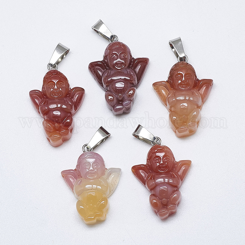 • Красный Агат Натуральный сердолик / красные агатовые подвески, с защелкой из нержавеющей стали на поручнях, ангел, платина, 26~28x18~20x8~9 мм, отверстие : 7.5x4 мм