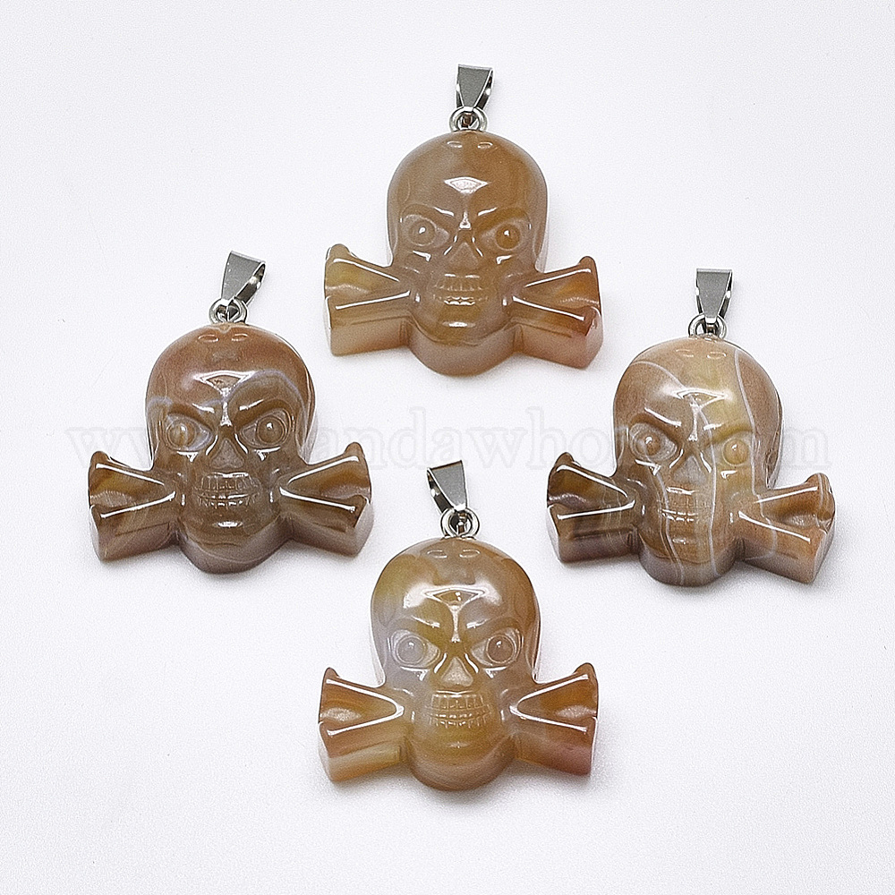 Природные подвески агат, с защелкой из нержавеющей стали на поручнях, череп, цвет нержавеющей стали