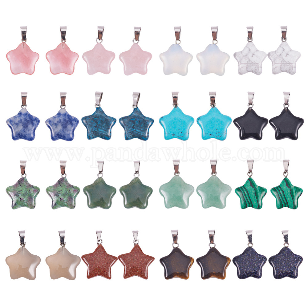 Природные и синтетические смешанные каменные подвески, латунная фурнитура с платиновым покрытием, звезда, платина