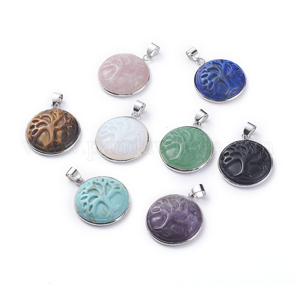 Драгоценный камень подвески, с настройками кулона из латуни платинового тона, плоские круглые с деревом