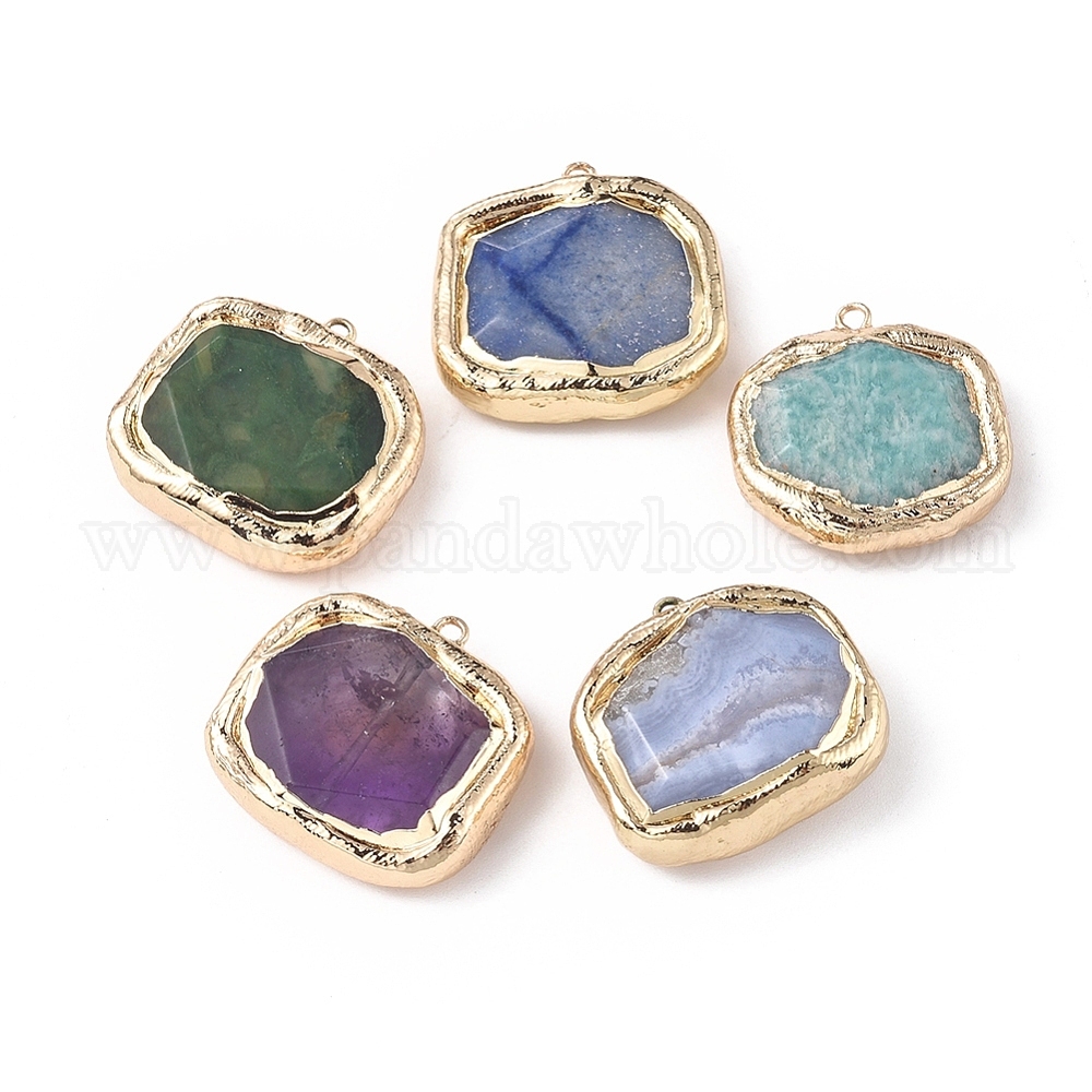 Природные смешанные подвески драгоценных камней, край позолоченный, с медными петлями, граненые, прямоугольные