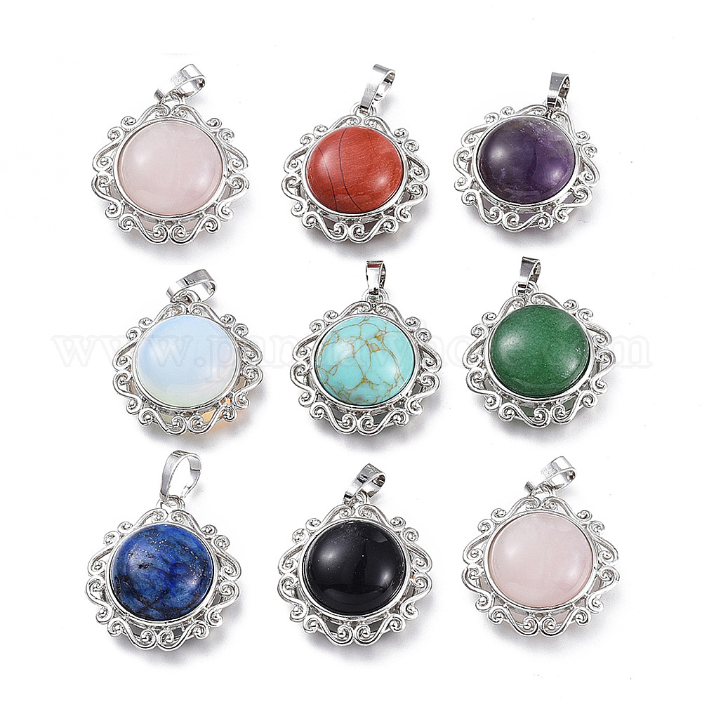 • Смешанные камни Cmешанные подвески драгоценных камней, с латунными вставками и дужками, полукруглый, платина, 27x24.5x9~10 мм, отверстие : 5x8 мм