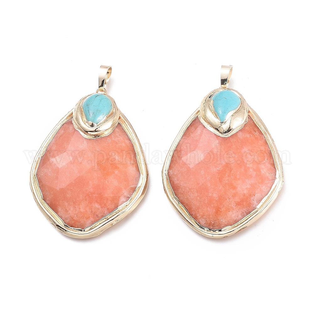 Кулоны из крашеного натурального нефрита, с синтетическими бирюзовых и латунных выводов, слеза, граненые