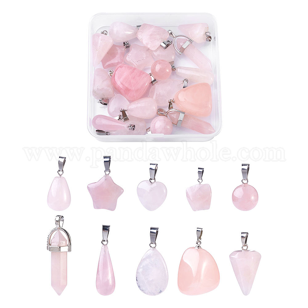 Природного розового кварца подвески, с латунной фурнитурой платинового цвета, разнообразные