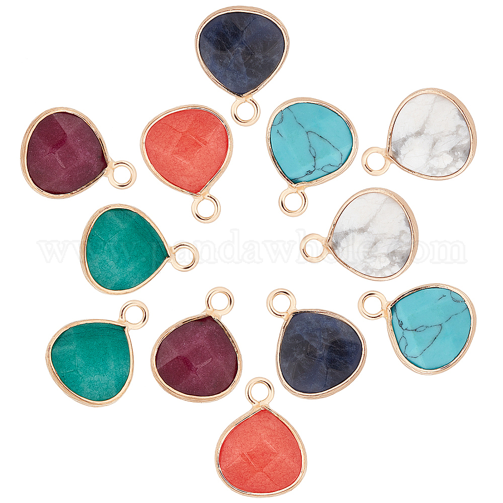 12шт 6 цвета натуральный белый нефрит драгоценный камень подвески, с петлями из латуни без никеля, окрашенные, граненые, слеза, золотые
