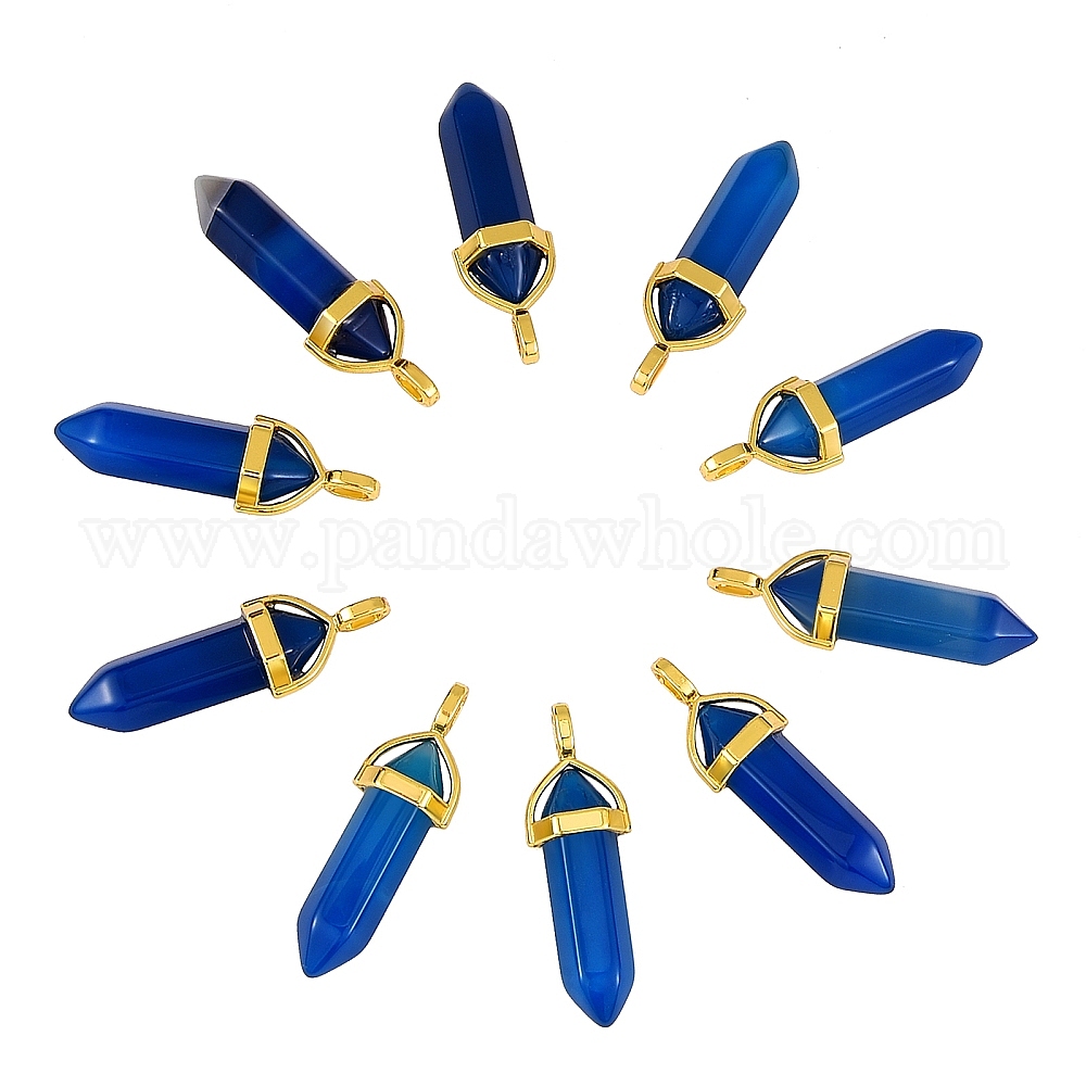 Натуральные агатовые остроконечные подвески, с подвеской из случайного сплава с шестигранной головкой, золотые, пуля