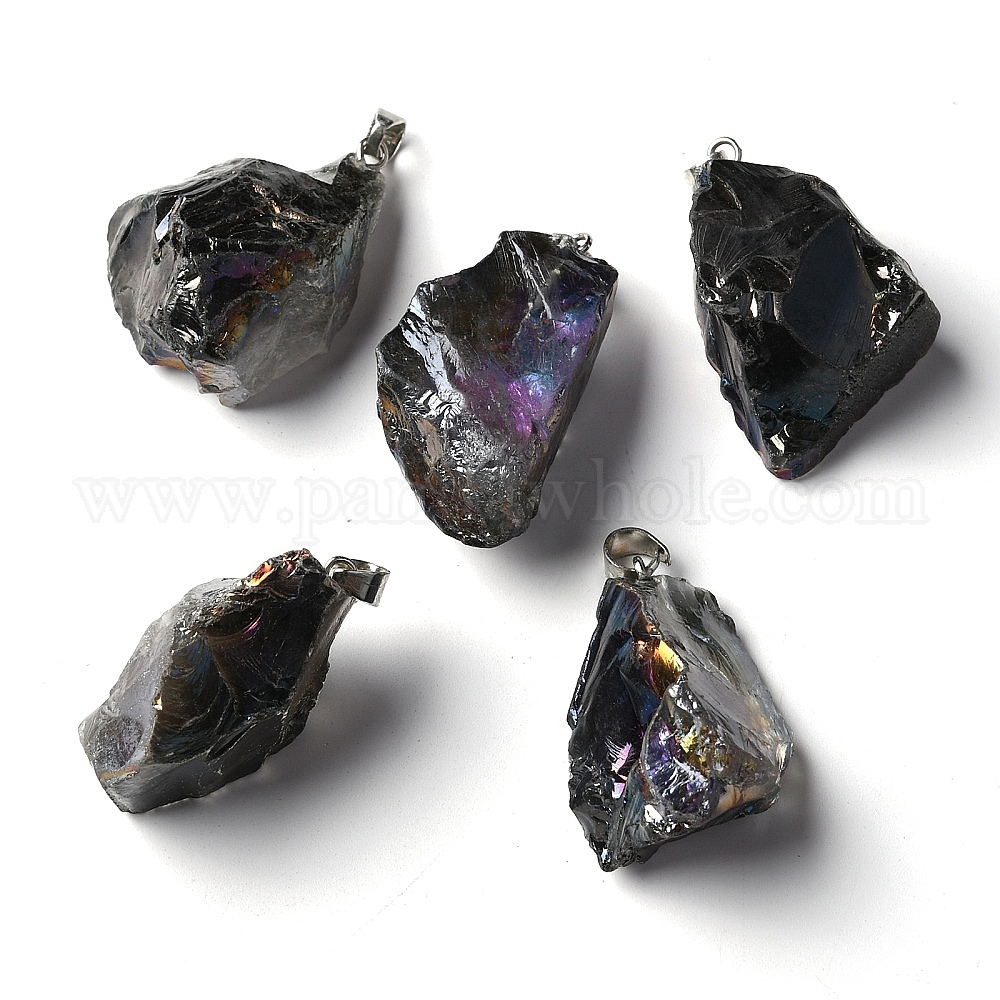 Грубые необработанные гальванические подвески из натурального кристалла кварца, с защелкой из сплава платинового цвета на дужках, самородки