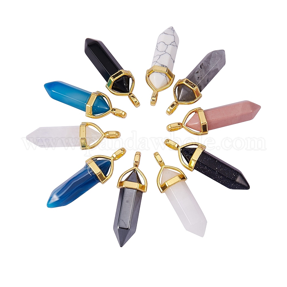 • Смешанные камни 10 шт 10 стиль смешанные драгоценные камни с двойным концом остроконечные подвески, с подвеской из случайного сплава с шестигранной головкой, золотые, пуля, 37~40x12.5x10 мм, отверстие : 3 мм, 1 шт / стиль