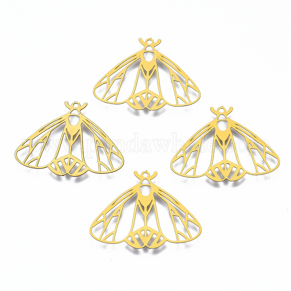 • Настоящее золото 18K Вакуумное покрытие pvd 201 филигранные подвески из нержавеющей стали, гравированные металлические украшения, моль, без никеля , реальный 18 k позолоченный, 21.5x27x0.3 мм, отверстие : 1.2 мм