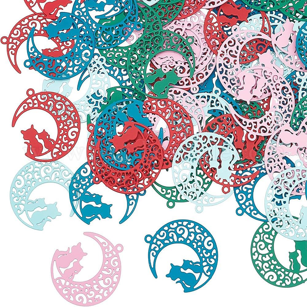 70 шт. 5 цвета 430 подвески в виде котенка из нержавеющей стали, окрашеные, гравированные металлические украшения, полумесяц в форме пары кошек