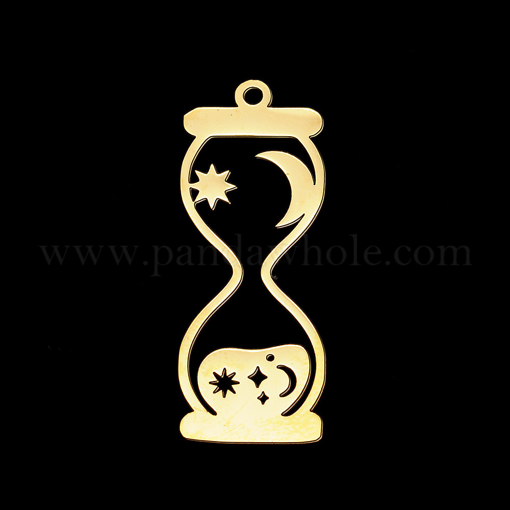• Золотой Вакуумное покрытие pvd 201 подвески из нержавеющей стали, лазерная резка, песочные/песочные часы, золотые, 31.5x12x1 мм, отверстие : 1.5 мм
