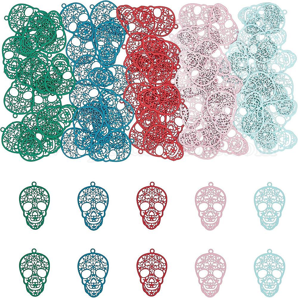 70 шт. 5 цвета 430 филигранные подвески из нержавеющей стали, окрашеные, гравированные металлические украшения, череп (02949R)