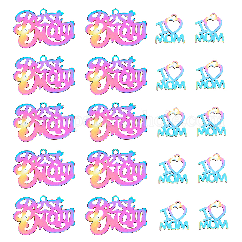 20 шт. 2 стиль День матери ионное покрытие (IP) 201 подвески из нержавеющей стали, гравированные металлические украшения