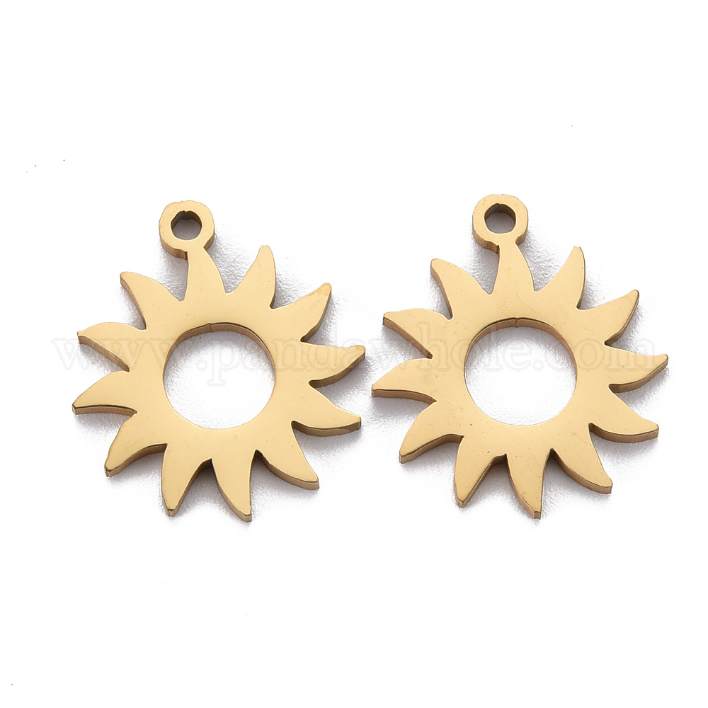 • Золотой Ионное покрытие (ip) 201 подвески из нержавеющей стали, резать, солнце, золотые, 16.5x14x1 мм, отверстие : 1.4 мм