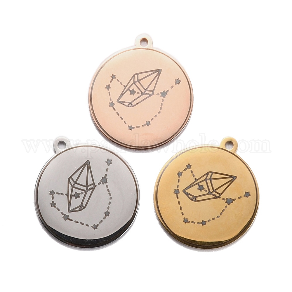 304 подвески из нержавеющей стали, плоский круглый со звездой и бриллиантом