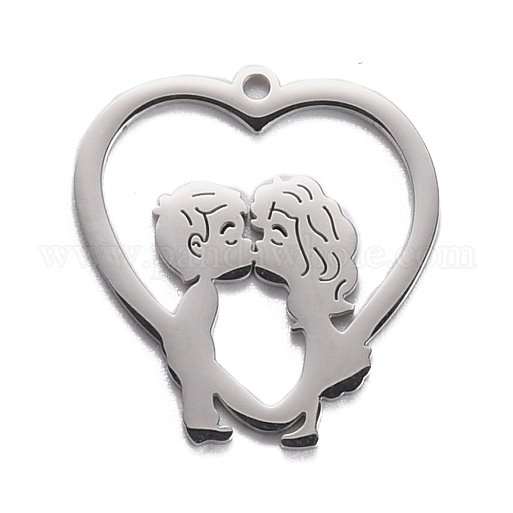 304 подвески из нержавеющей стали, сердце с узором поцелуй мальчика и девочки