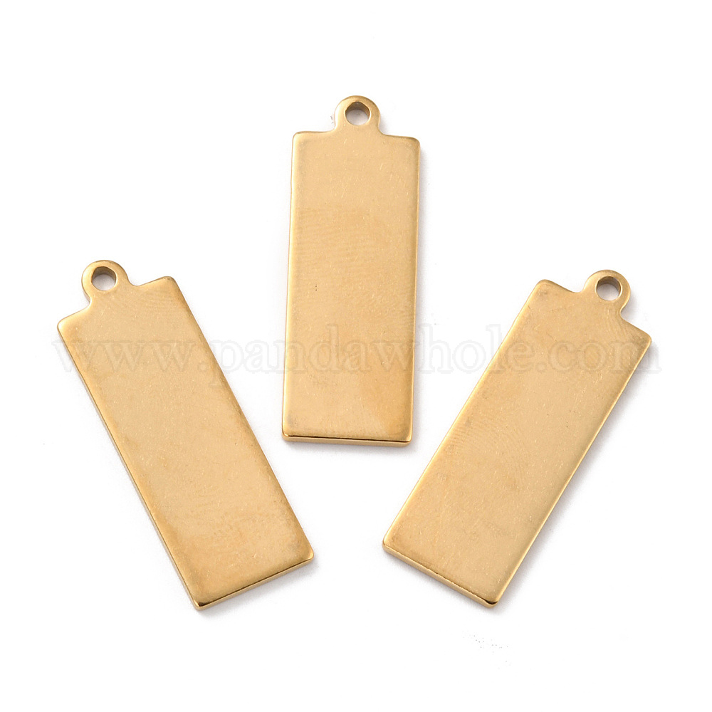 • Настоящее золото 18K Ионное покрытие (ip) 201 кулон из нержавеющей стали, прямоугольные, реальный 18 k позолоченный, 35x12x1 мм, отверстие : 2 мм
