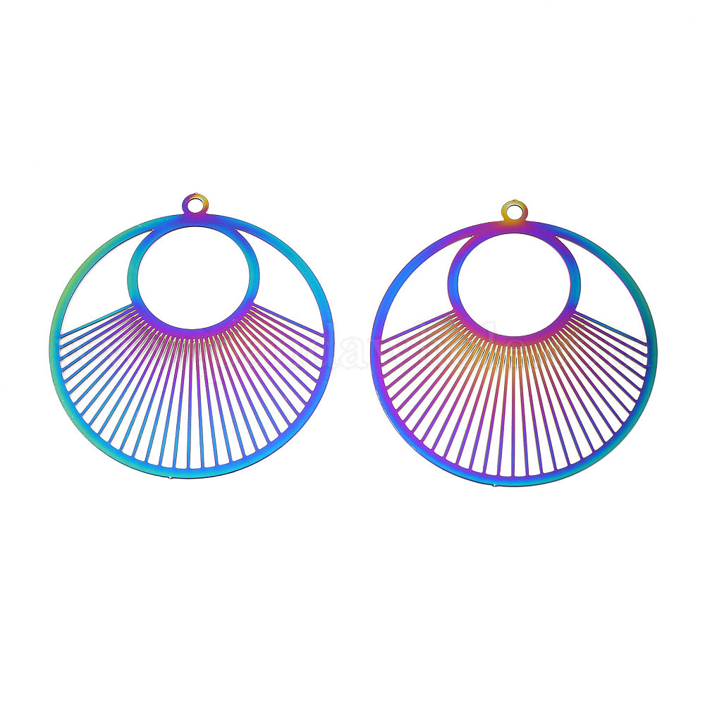 • Rainbow Color Ионное покрытие (ip) 201 филигранные подвески из нержавеющей стали, гравированные металлические украшения, плоско-круглые, Радуга цветов, 43x40x0.2 мм, отверстие : 2 мм