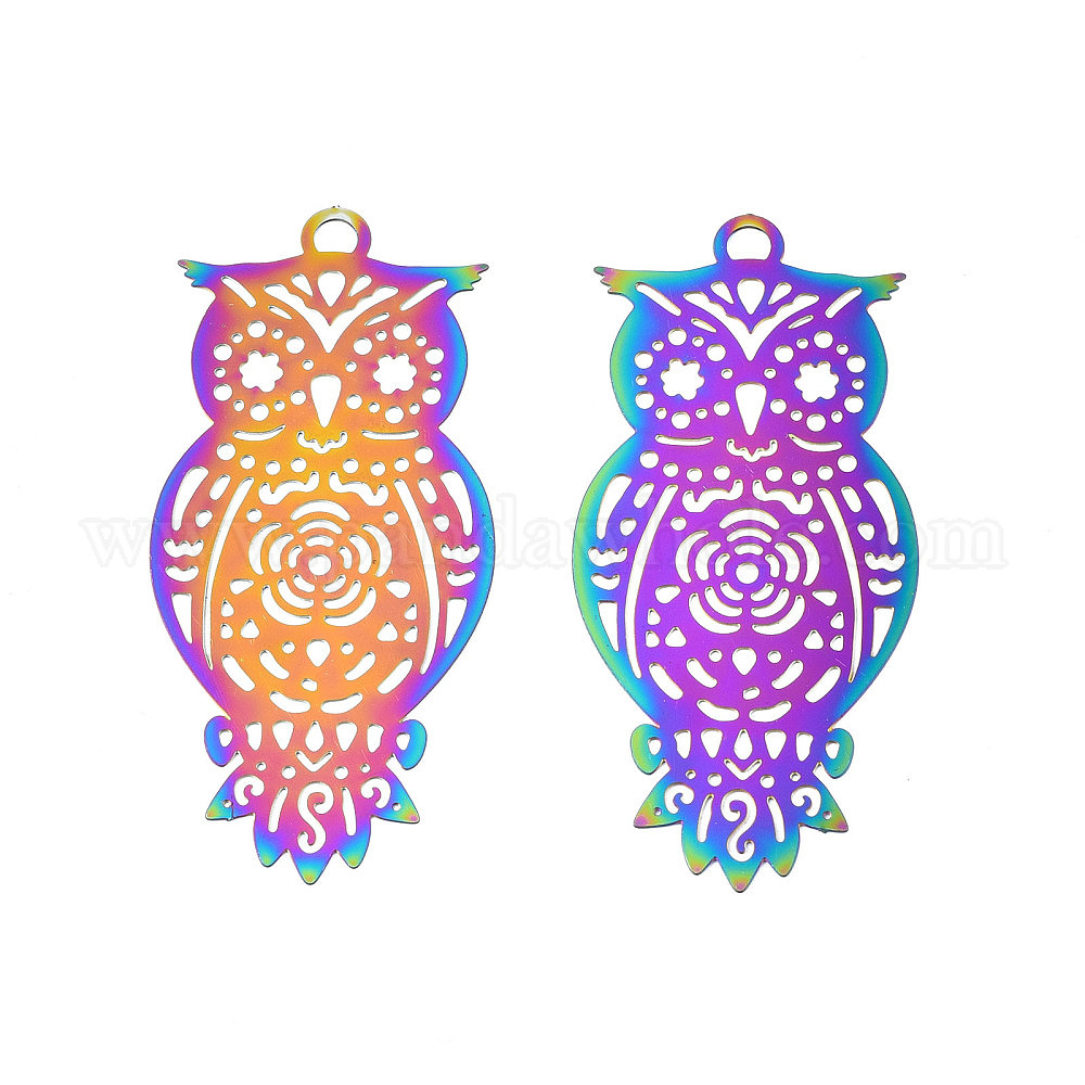 Ионное покрытие (ip) 201 филигранные подвески из нержавеющей стали, гравированные металлические украшения, сова