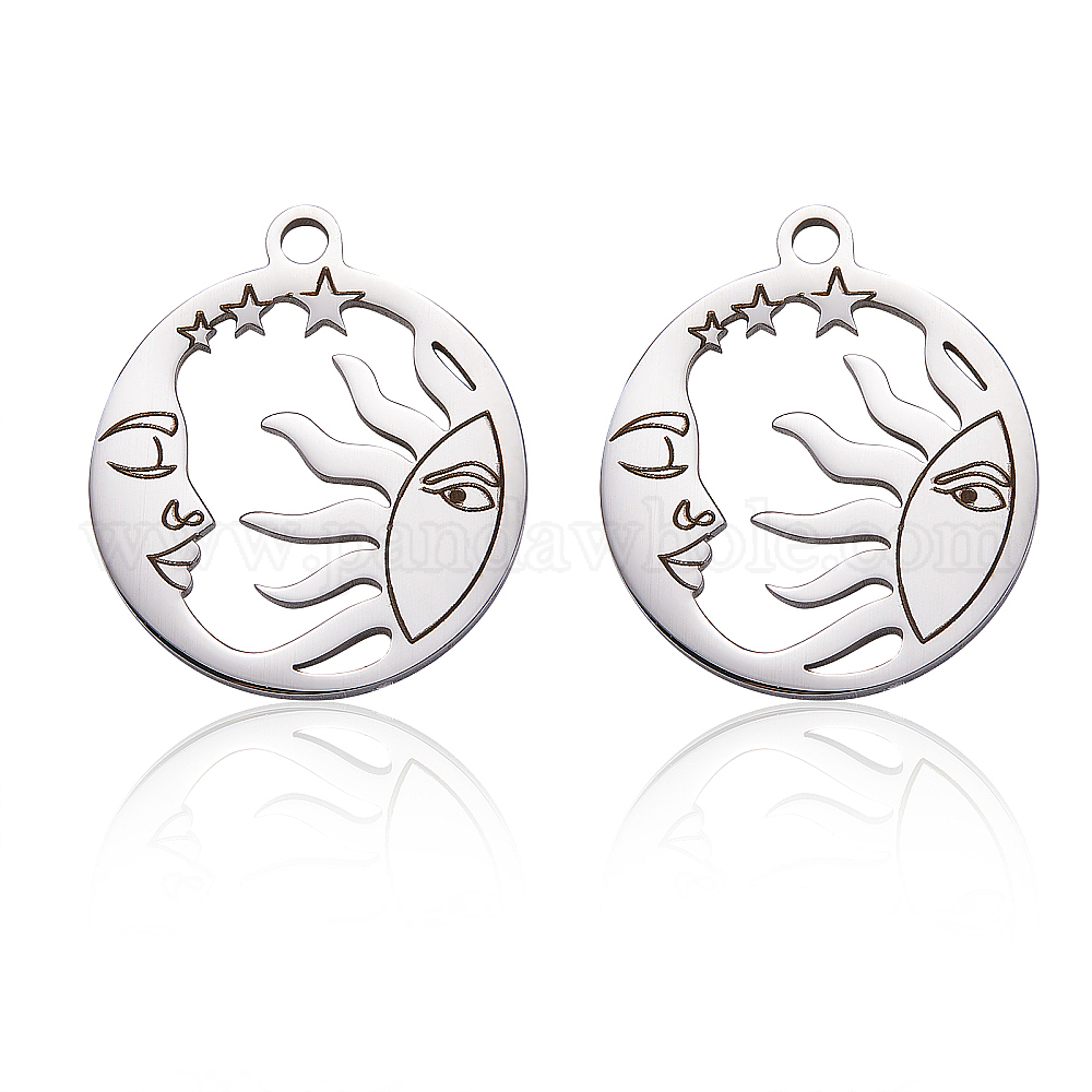 201 подвески из нержавеющей стали, полый, плоский круглый с солнцем и звездой