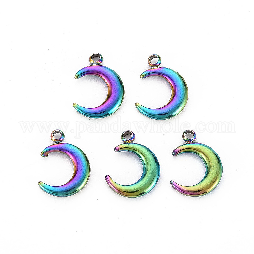 • Rainbow Color 201 прелести нержавеющей стали, очарование полумесяца, луна, Радуга цветов, 12x8.5x2 мм, отверстие : 1.4 мм