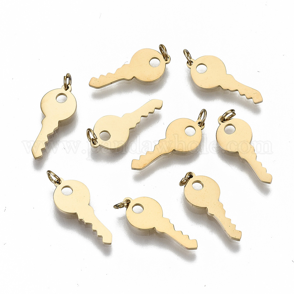 • Черный Ионное покрытие (ip) 304 брелоки из нержавеющей стали, лазерная резка, с прыжковых колец, ключ, чёрные, 15x6x0.7 мм, Перейти кольцо: 3x0.4 мм, 2.2 мм внутренним диаметром