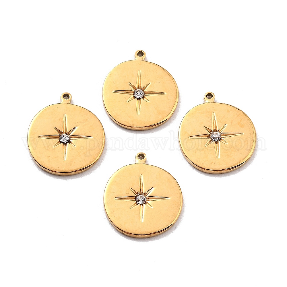 Ионное покрытие (ip) 304 кулон из нержавеющей стали со стразами, реальный 24 k позолоченный, плоские круглые с солнцем