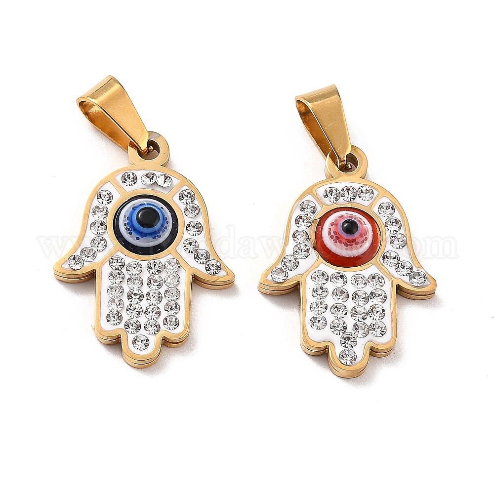 304 подвески из нержавеющей стали, со стразами из полимерной глины и круглыми бусинами из смолы от сглаза, 201 поручни из нержавеющей стали, hamsa hnad (02C7Q3)