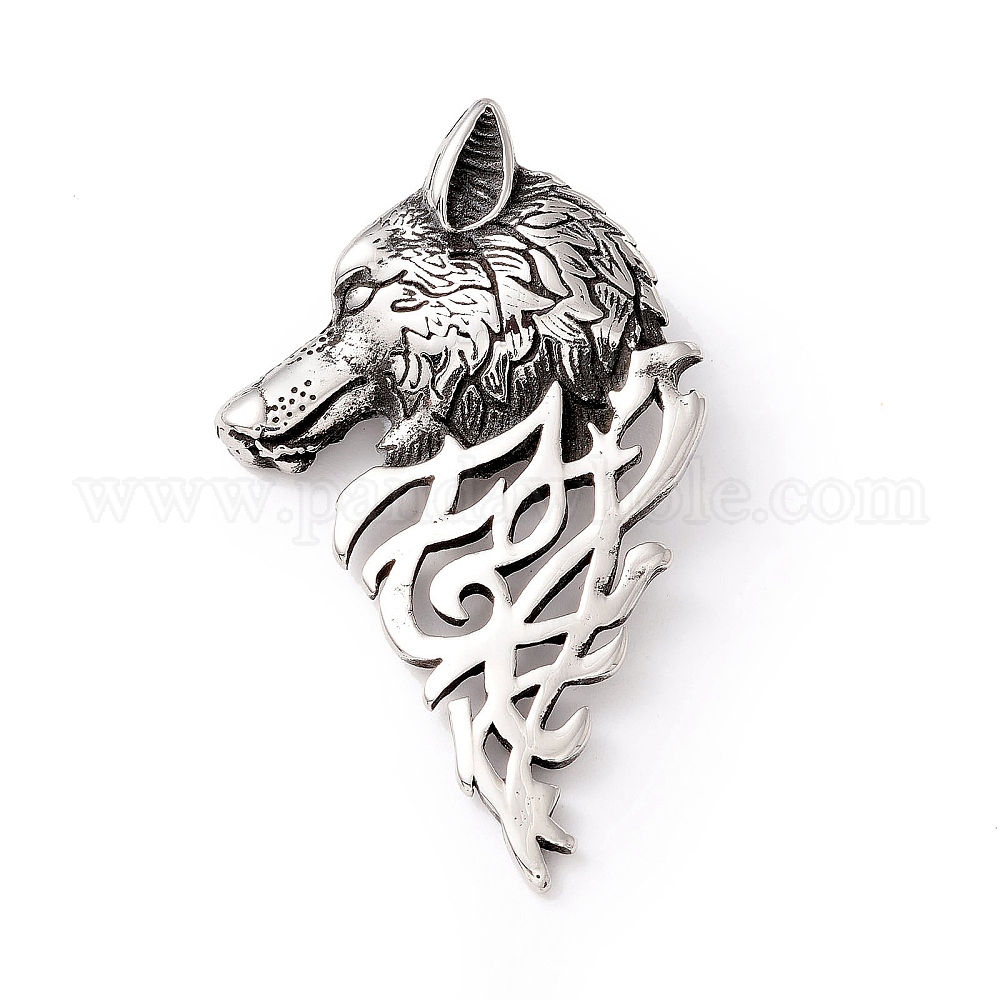 Тибетский стиль 304 подвески из нержавеющей стали, волк (02CFKZ)