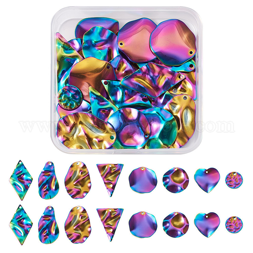 32 шт. 8 стиль радужный цвет 304 подвески из нержавеющей стали, водная рябь, разнообразные