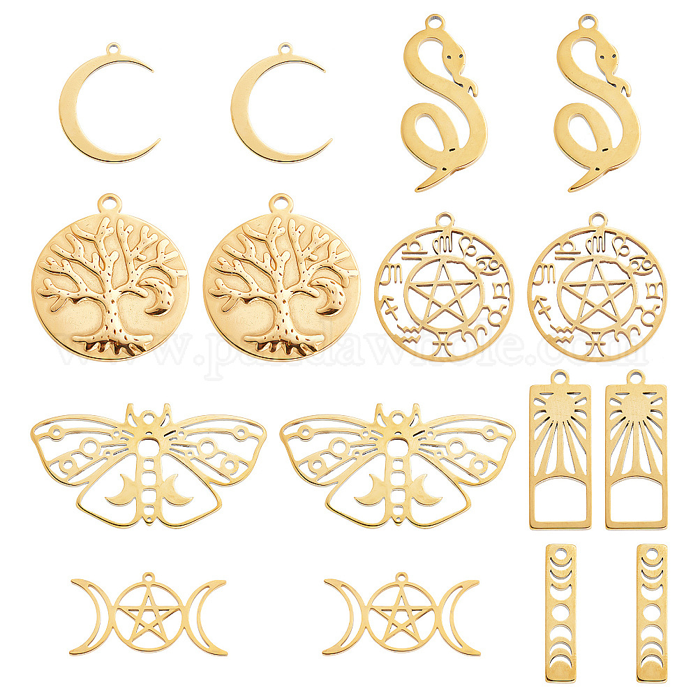 16 шт 8 стиль 304 подвески из нержавеющей стали, змея и луна и бабочка