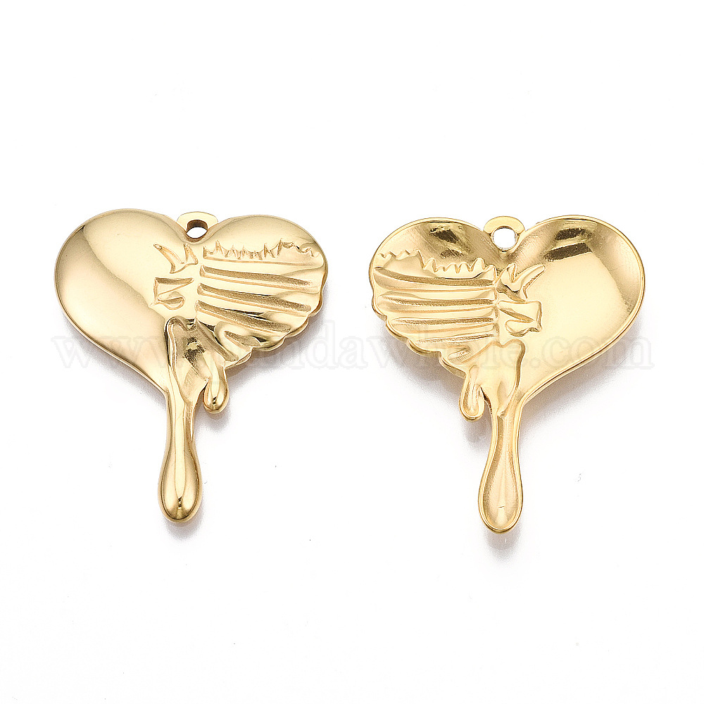 • Настоящее золото 18K Ионное покрытие (ip) 201 подвески из нержавеющей стали, тающее сердце, реальный 18 k позолоченный, 30x24.5x3 мм, отверстие : 1.6 мм