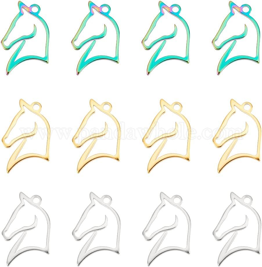 12 шт. 3 цвета 304 подвески из нержавеющей стали, лошадь