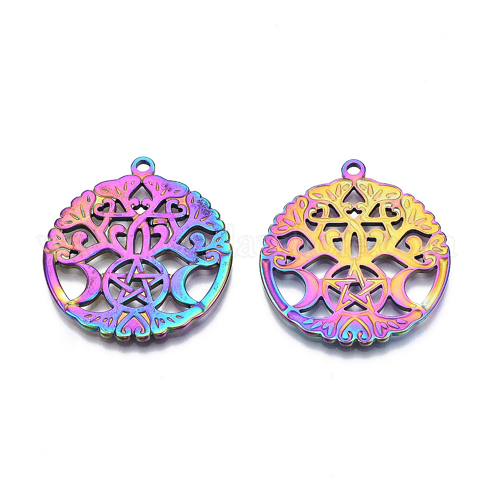 Ионное покрытие (ip) 201 подвески из нержавеющей стали, плоский круглый со звездой и луной