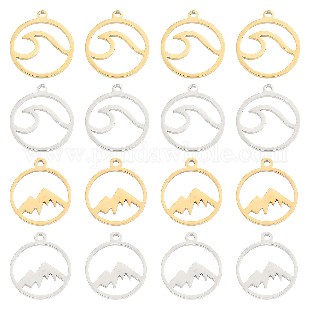 40 шт 4 стиль подвески из нержавеющей стали, круглое кольцо с волной и горой