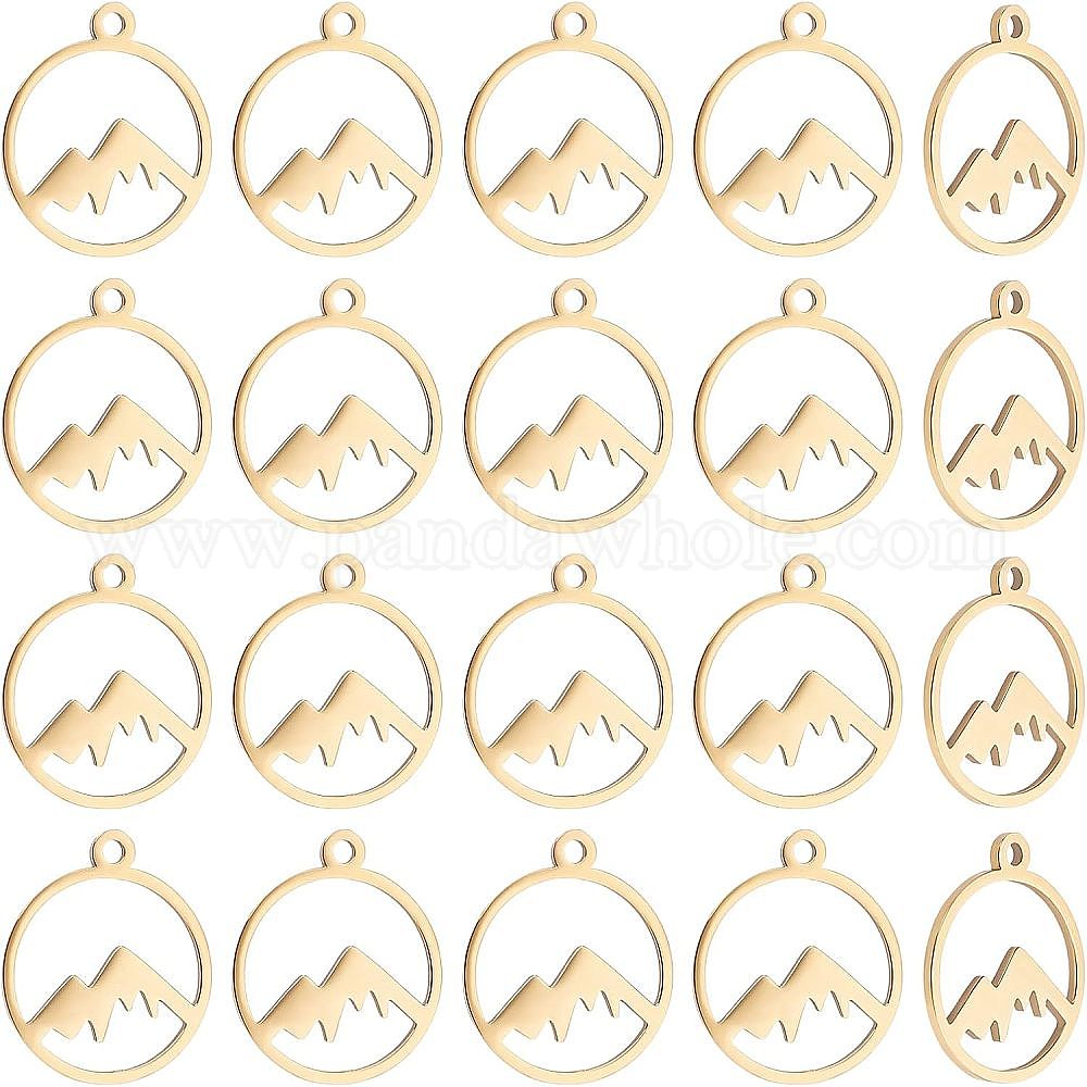 • Золотой 201 подвески из нержавеющей стали для лазерной резки, гора, золотые, 17x14.5x1 мм, отверстие : 1.5 мм, 20 шт / коробка
