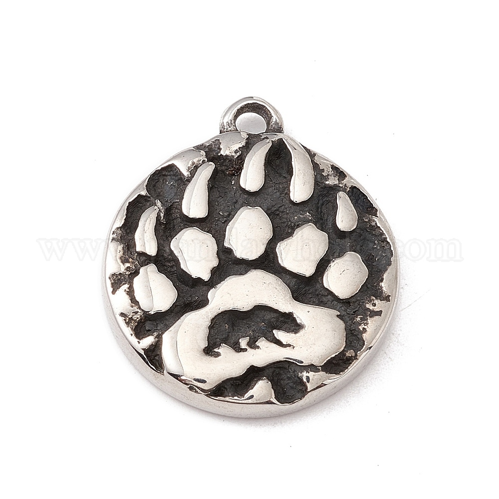 304 кулон из нержавеющей стали, плоский круглый с отпечатком медвежьей лапы