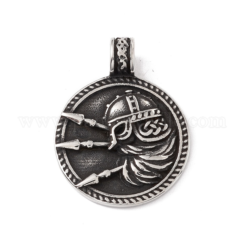 304 кулон из нержавеющей стали, плоский круглый с викингом