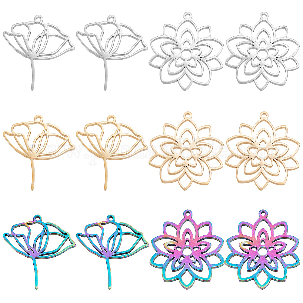 12 шт 6 стиль 304 подвески из нержавеющей стали, цветок