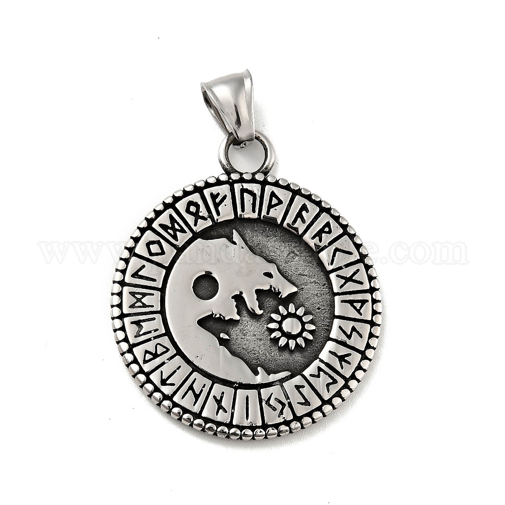 304 подвески из нержавеющей стали, плоские круглые с волком