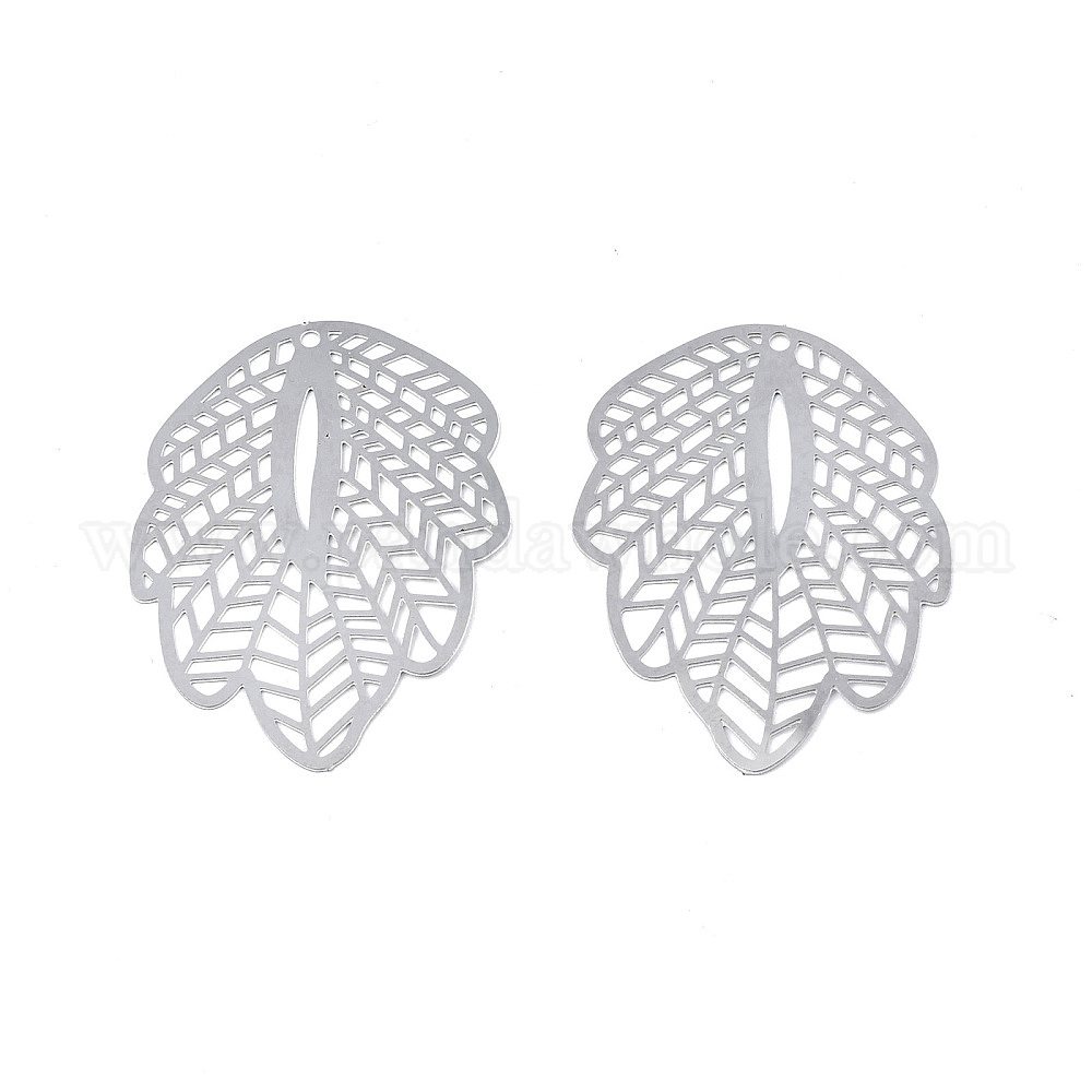 • Нержавеющая Сталь Цвет Не тускнеющие 201 подвески из нержавеющей стали, гравированные металлические украшения, лист, цвет нержавеющей стали, 35x26x0.3 мм, отверстие : 1.2 мм