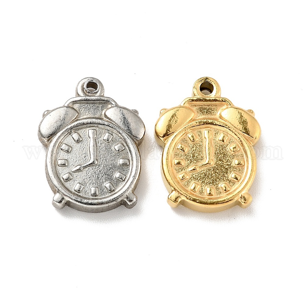 • Золотой & Цвет Нержавеющей Стали 16 шт. 2 цвета 201 подвески из нержавеющей стали для машинной полировки, часы, золотые и нержавеющая сталь цвет, 16.5x12.5x3 мм, отверстие : 1.2 мм, 8 шт / цвет