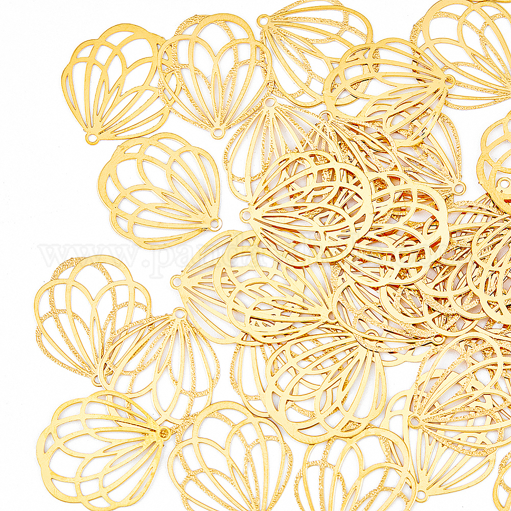 • Настоящее золото 18K 40покрытие стойки шт. 201 филигранные подвески из нержавеющей стали, гравированные металлические украшения, без никеля , цветок, реальный 18 k позолоченный, 20.5x18x0.4 мм, отверстие : 1.2 мм