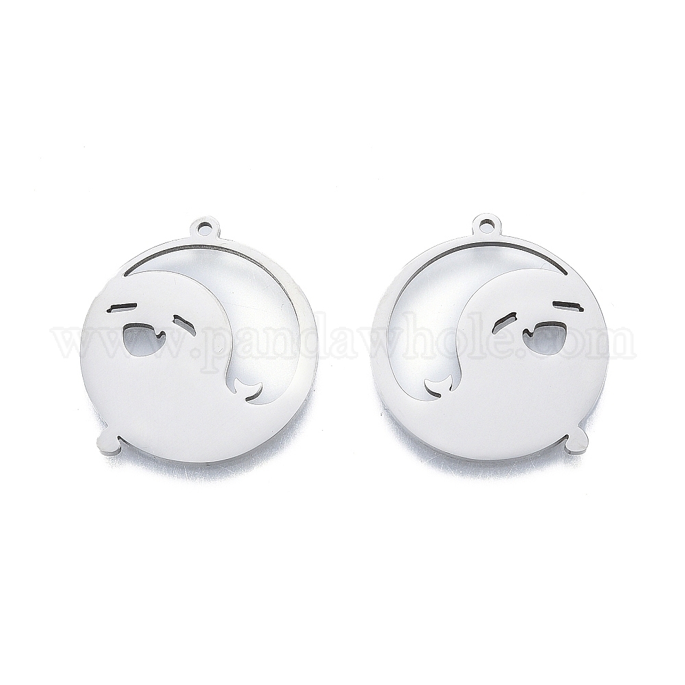 • Нержавеющая Сталь Цвет Не тускнеет 201 подвеска из нержавеющей стали, плоский круглый с призраком, цвет нержавеющей стали, 27.5x25x1.5 мм, отверстие : 1.4 мм