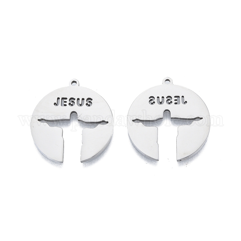 201 кулон из нержавеющей стали, полые прелести, плоский круглый со словом jesus