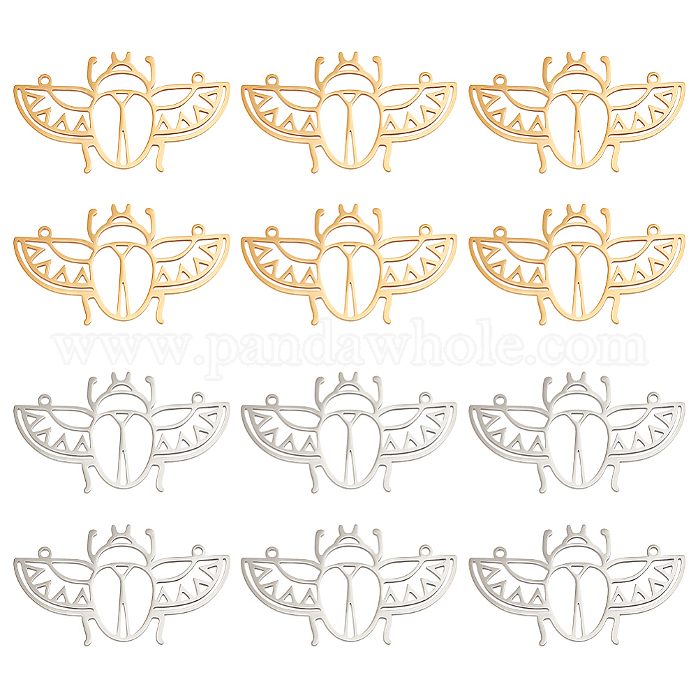 • Позолоченный и Цвет Нержавейки 12 шт. 2 цвета 201 подвески из нержавеющей стали, цикада, настоящее золото и нержавеющая сталь, 22x38.5x1 мм, отверстие : 1.4 мм, 6 шт / цвет